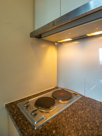 - The bedroom has good space and is fitted with a full twin bed with duvet