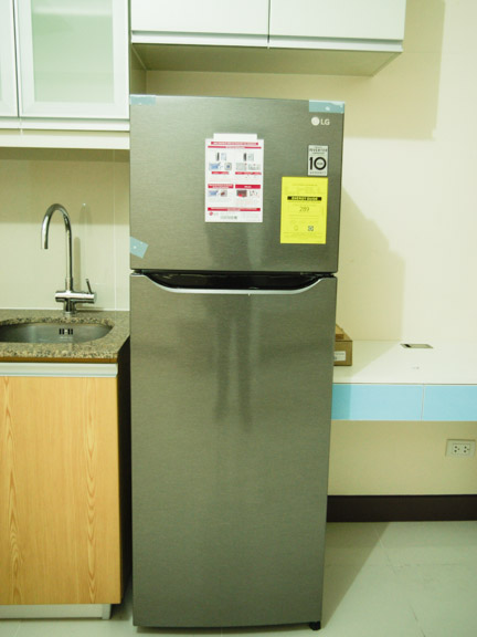 - Two-door fridge, electric cook-top with hood, and decent cupboard space are featured in the kitchen area