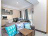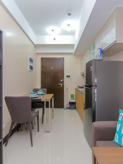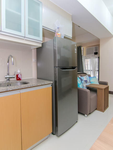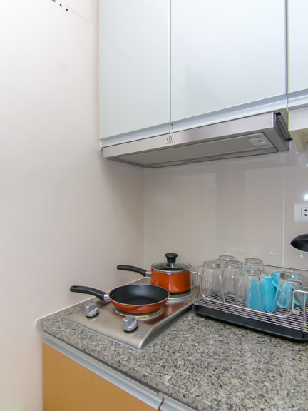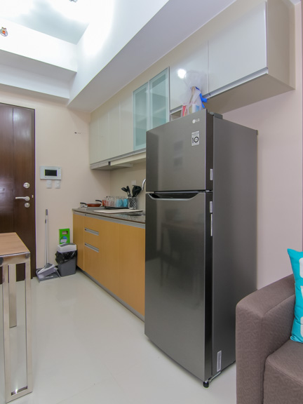 - Kitchen is equipped with a two-door refrigerator, electric cook-top with range hood, and lots of cabinet space