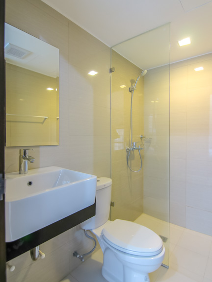 - Bathroom includes hand-held shower head and provision for water heater under the sink
