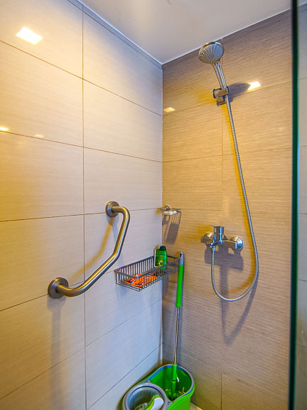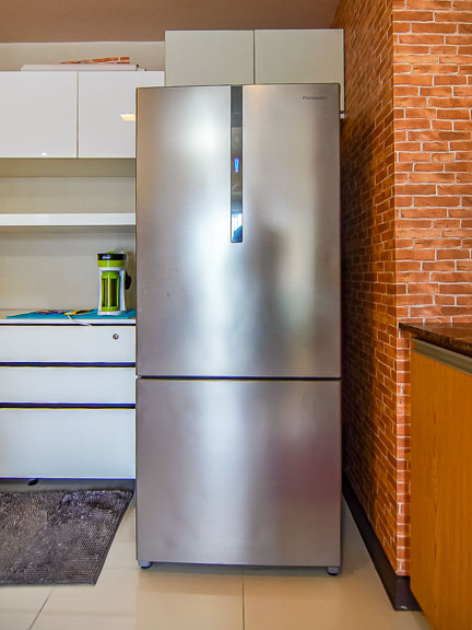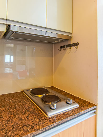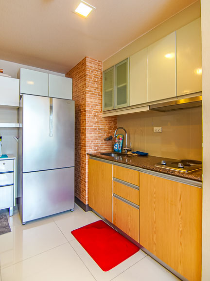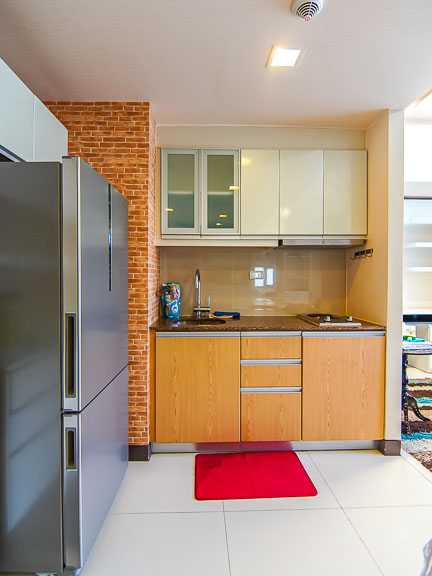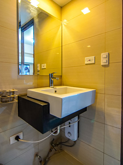 • Kitchen is fitted with an electric cooktop with telescopic hood, and provision that fits a two-door fridge