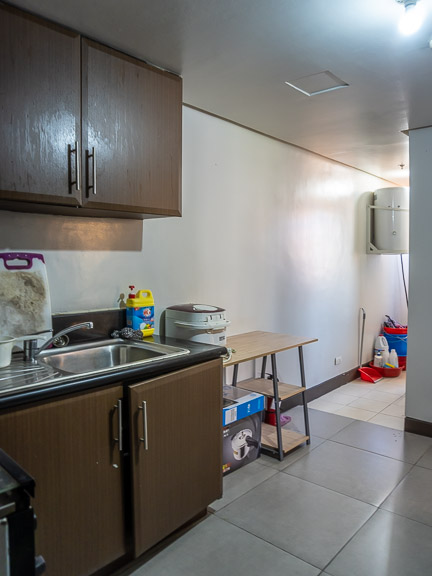 - The kitchen extends into a laundry area and maid’s room with its own bathroom