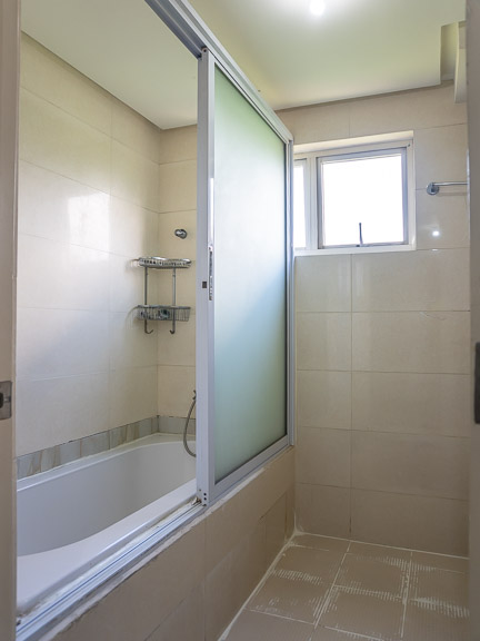 - The master bathroom is fitted with a bathtub