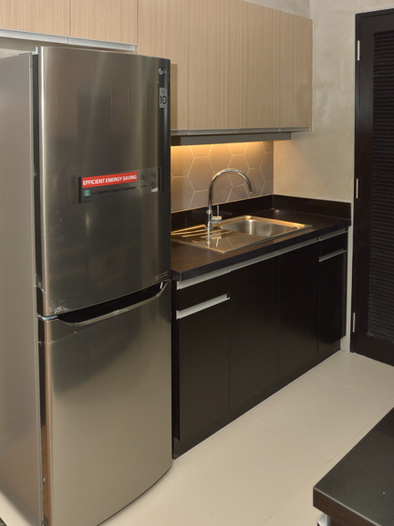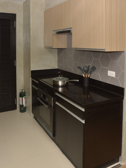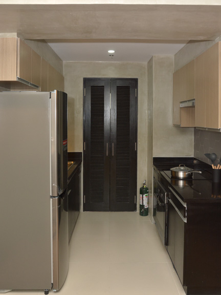 - Two-wall kitchen equipped with two-door fridge, induction cooktop, slide-in oven roaster