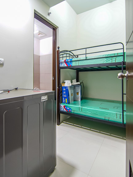 • Maid’s room next to the kitchen is fitted with a double decker bed, front load washing machine