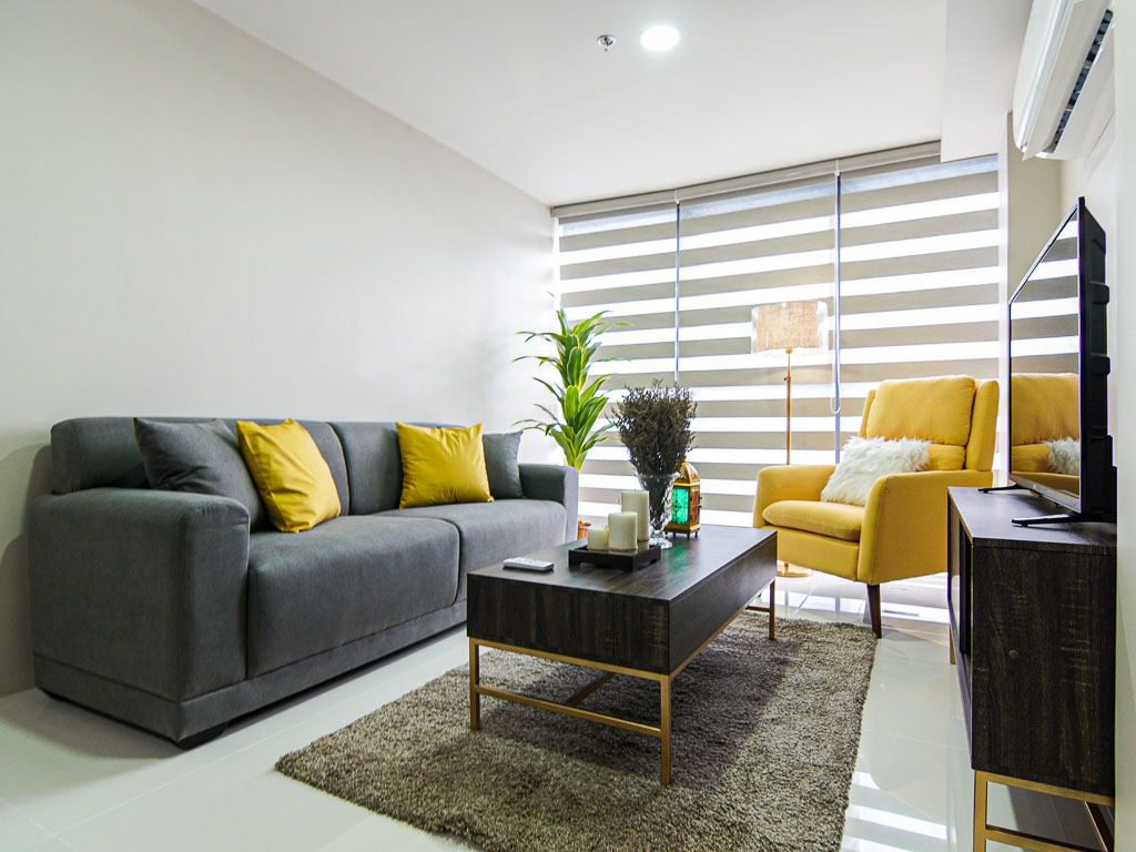 Features a simple yet polished modern interior design that gives off an urban-living feel