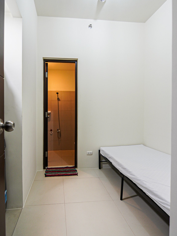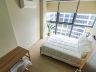 The second bedroom has a full-twin bed, single side table, and study desk
