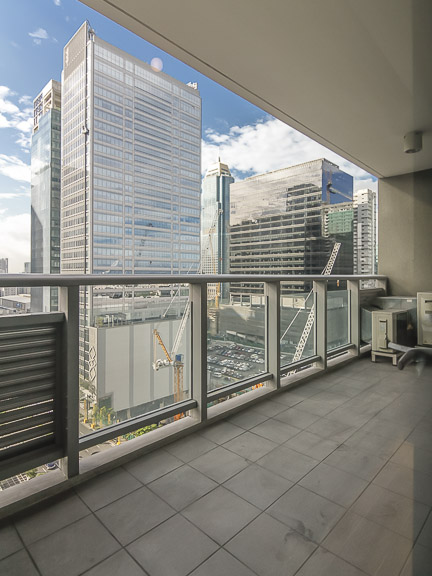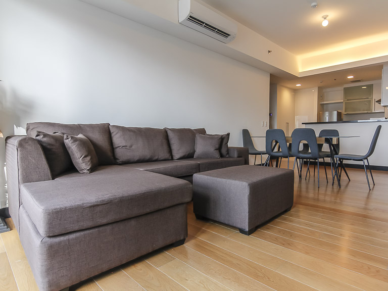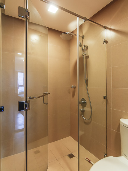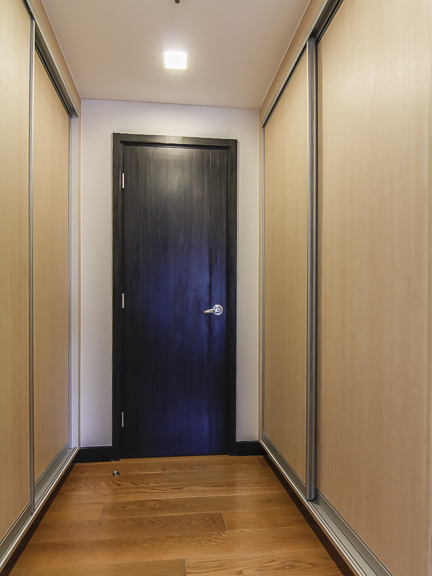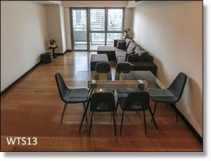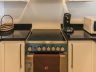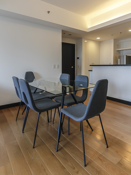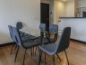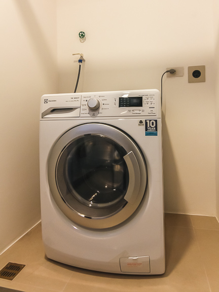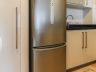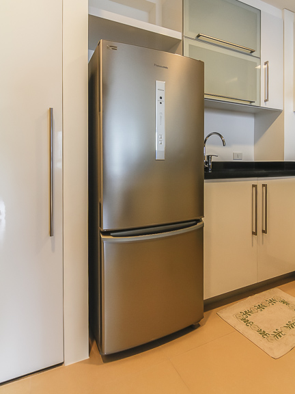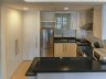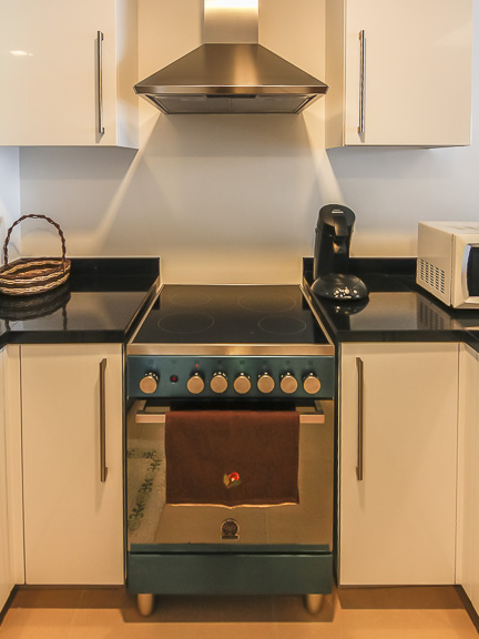 - Complete open kitchen, fitted with two-door ref, ceramic range with hood, microwave oven, front-load washer, and bar counter
